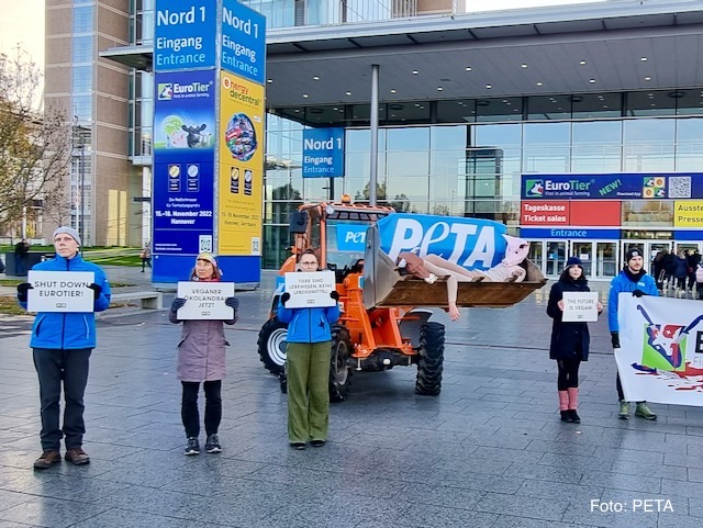 - Dierenrechtenorganisatie PETA demonstreert voor de ingang van de beurs